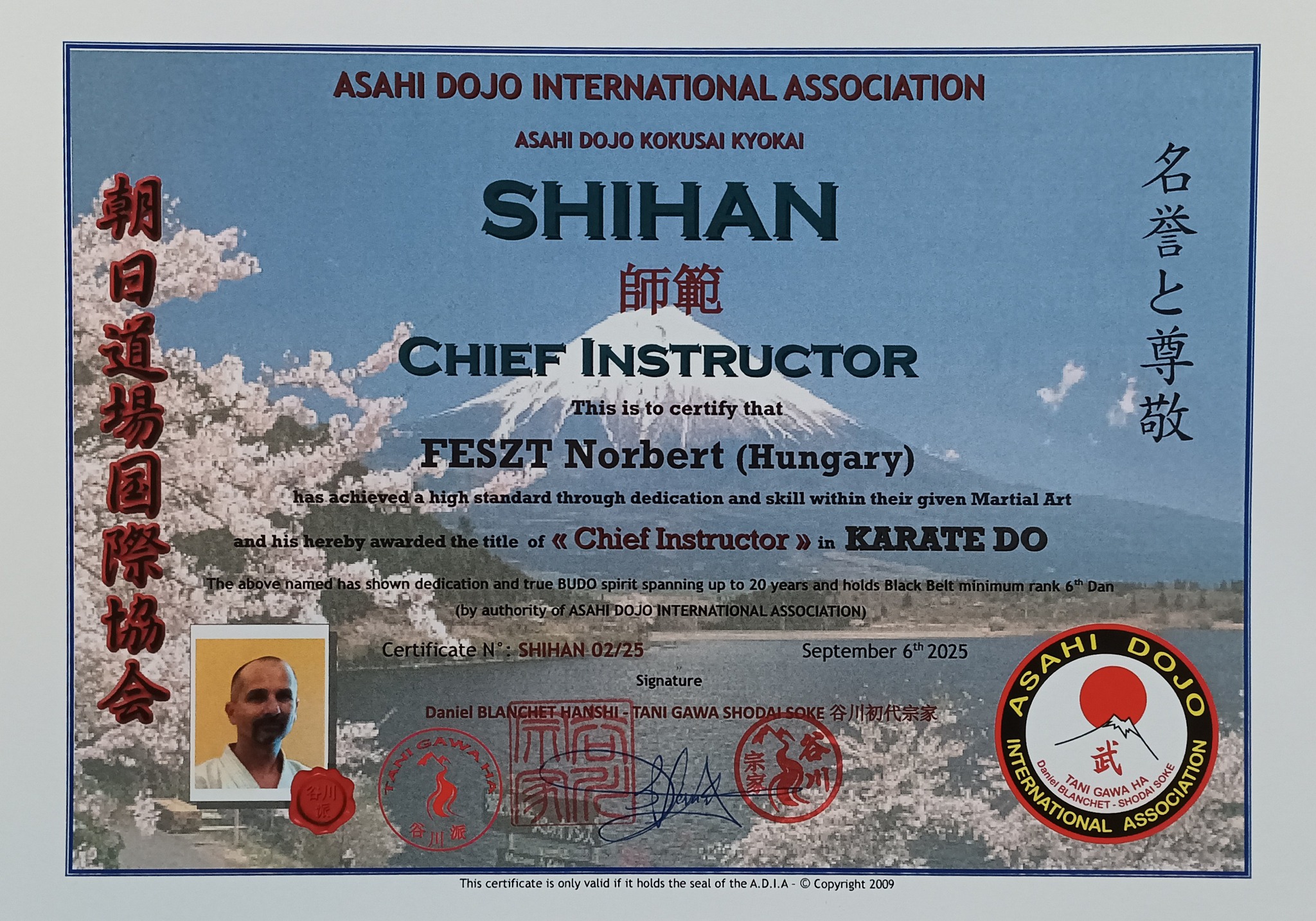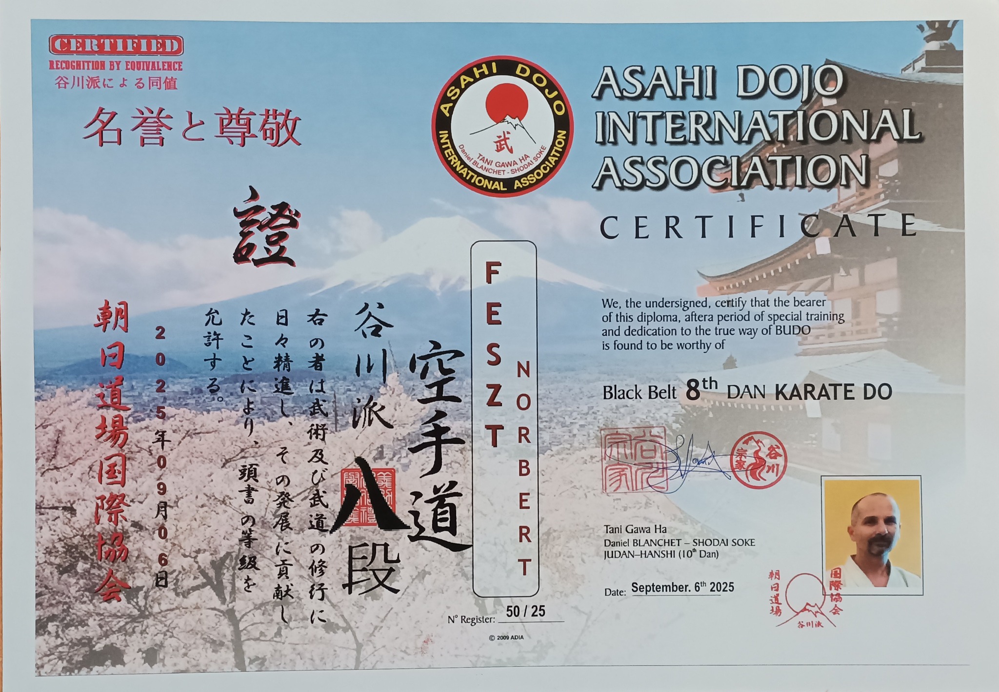 2025.szept. 06.-n az Asahi Dojo International Accotiation vilgszvetsg elnke Soke Daniel Blanche 10. Dan japn Hanshi,
